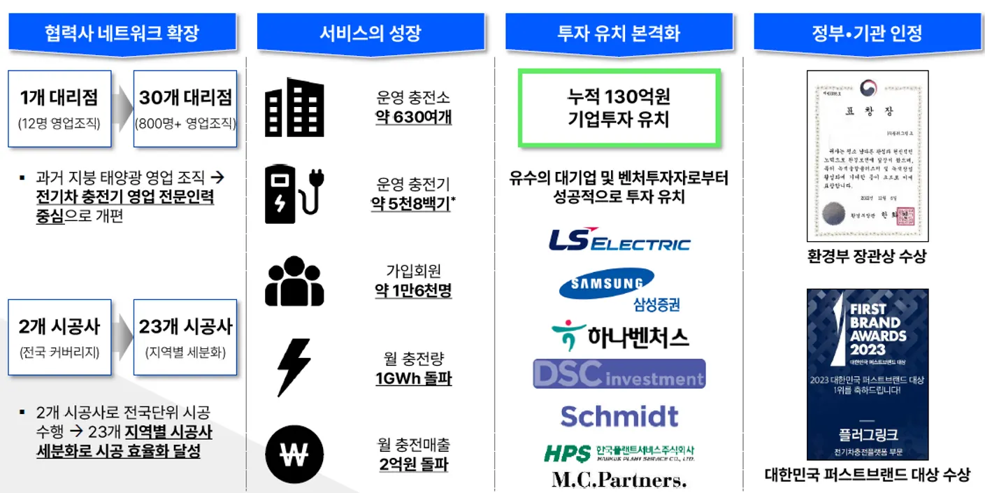 플러그링크는 고객 경험 중심의 전기차 충전 기업으로서, 공격적인 투자와 안정적인 사업개발을 필두로 시장에서 가장 빠른 속도로 성장하고 있습니다.